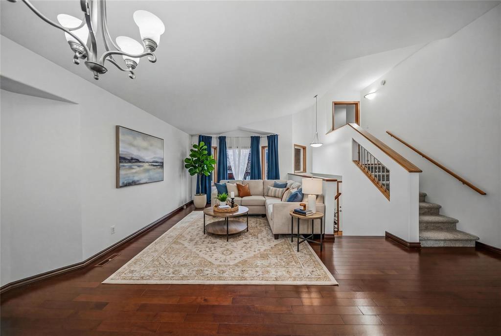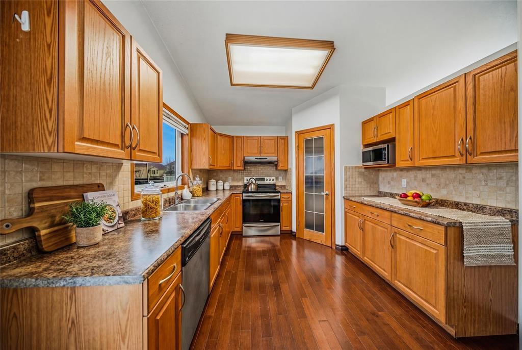 4L//Winnipeg/Showing Starts now.Offers will be presented on Monday,April 20,2026.Open House Sat(April 18th) and Sun(April 19th) from 2-4 PM.Welcome to this stunning and bright 5 bedrooms,3-full bathroom cab-over family home,designed with comfort and functionality in mind.Some images have been virtually staged.Large windows throughout fill the home with natural light,creating a warm and living atmosphere.The spacious eat-in kitchen and great room serve as the heart of home,featuring beautiful wood cabinetry,stainless steel appliances, and a walk-in pantry.The kitchen opens onto a deck overlooking a generous,fully fenced backyard.The private primary bedroom is set on its own upper level,complete with walk-in closet and a 4-piece ensuite,offering a peaceful retreat.The main floor includes 2 additional well-sized bedrooms and a full bathroom.The fully finished basement adds even more space,featuring 2 bedrooms,large rec room and 1 full bathroom.Located in a highly desirable neighborhood close to schools,shopping,transportation,parks and all essential amenities.Book your showing today! (id:51877)