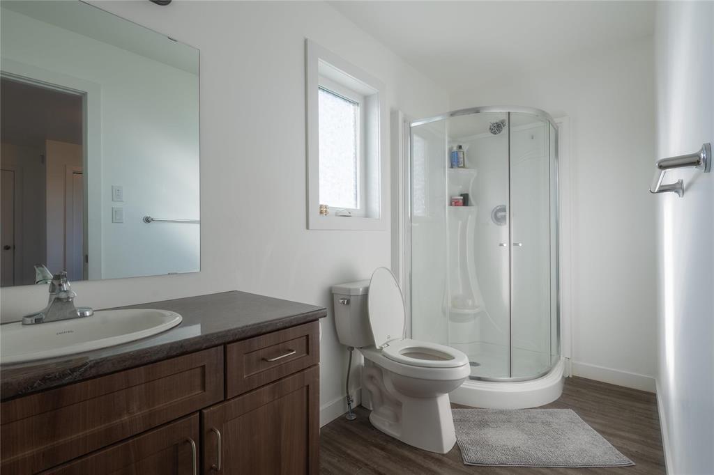 R16//Blumenort/Offers as received. Welcome to this charming bi-level home in the cozy town of Blumenort, just minutes from Steinbach. As you enter the home, you'll be greeted by a bright living room filled w/ natural light. Adjacent to the living room is a dining area & modern kitchen; featuring a built-in microwave, SS appliances, new backsplash, & a water filtration system. On the main floor, you'll find the master bedroom with a private ensuite bathroom, plus an additional bedroom & full bath. Descending to the fully finished basement, you'll discover 3 additional bedrooms, providing plenty of space for family, guests, or a home office. The spacious rec room offers a versatile space for entertainment, whether it's a home theatre, game room, or exercise area. Stepping outside you have beautifully landscaped yard, complete w/ a deck & a concrete driveway. The fence with attached screen adds more privacy & security. Many upgrades throughout! Don't miss your chance to own this beautiful home, call today! (id:51877)
