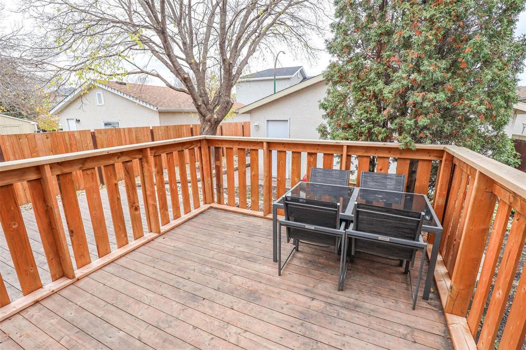 3M//Winnipeg/Wow! Amazing two storey available now in Canterbury Park. This 3 bedroom 3 bath home is located on a nice deep lot. Homes on the street rarely become available especially ones that show this well. This beauty is well cared for by its long time owner. Nothing to do but simply move in and enjoy. The home features a huge living room when you enter. The white bright kitchen and dining room are perfect for entertaining and those friends and family get togethers. Powder room on main. Going up the stairs leads to 3 good size bedrooms and a 4 piece bath. The fully finished lower level has a huge rec-room, office, den, laundry/utility room and additional storage. Central vac. The fully fenced landscaped yard includes huge deck, nice patio with firepit and an oversized 24' x 24' double detached garage. New high-efficient furnace '19, new furnace humidifier, new HWT and new A/C '25, new deck and fence '24, washer and dryer '23, BBQ deck gas line, 220 cable to garage for heat '23, and so much more. Great family friendly area and easy walk to local Sir Winston Churchill Park. Quick getaway to Perimeter makes commuting easy. Close to schools, parks, shopping and all amenities. An absolute must see! Call today! (id:51877)
